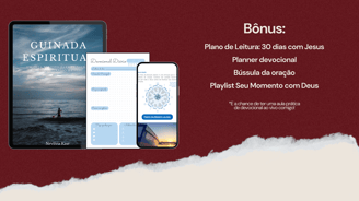 - O E-book Guinada Espiritual 2.0 oferece um passo a passo simples e claro, começando pelas bases da fé e indo até disciplinas mais profundas. Com um plano organizado, você será guiada de forma segura em cada etapa da sua jornada.