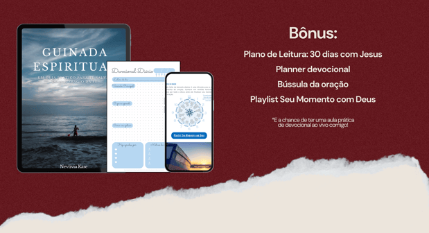 Ao adquirir o Guinada Espiritual, você recebe uma aula gravada totalmente gratuita para aprender a fazer o seu devocional todos os dias!